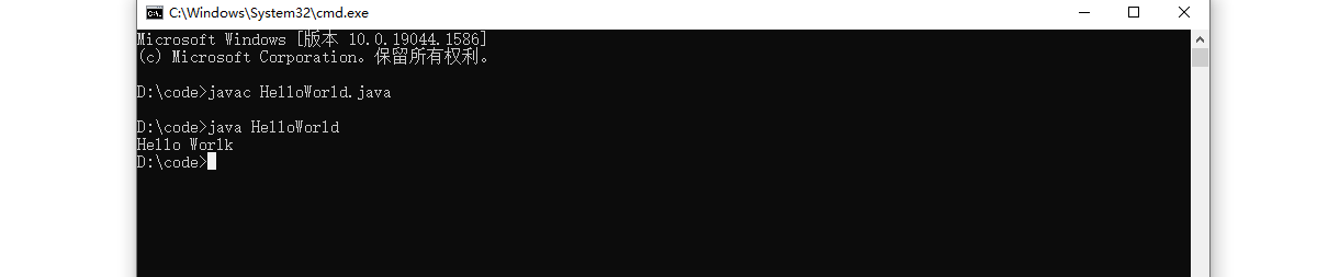 4.验证自己写的代码可以启动起来,在当前文件的目录下cmd,回车键,前编译我们的文件生成class文件,成功后我们文件夹下面会多出一个class文件,才可以执行 编译命令javac HelloWorld.java 然后执行启动命令 java HelloWorld
