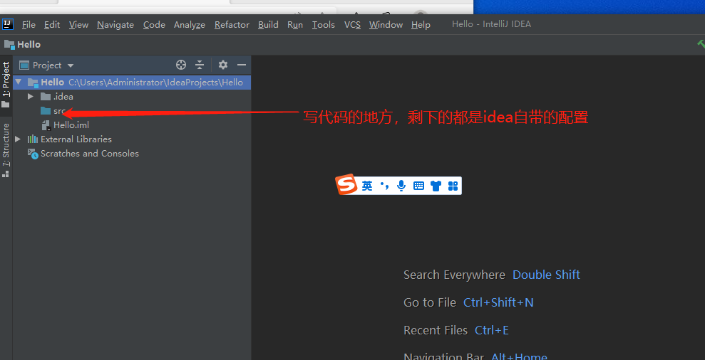 4文件src是我们写程序的地方,剩余的是idea的配置