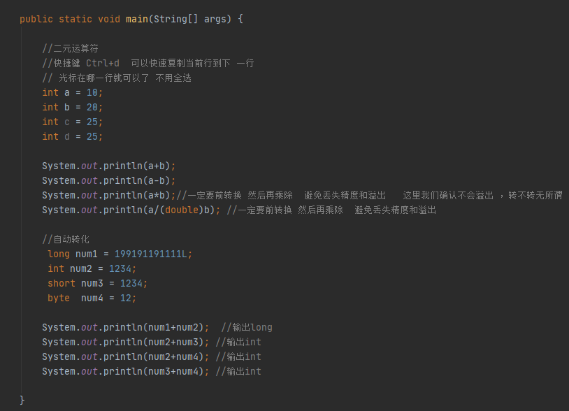 + - * / % ++ -- 加减乘除 取余 自加一 自减一