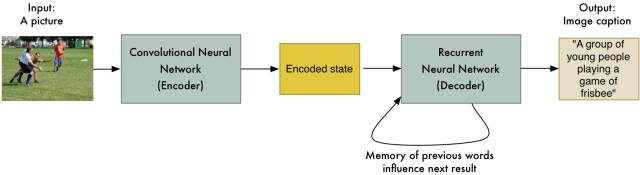谷歌的另一个团队使用卷积神经网络取代第一个 RNN 就做到了这一点。这使得输入可以是一张图片而非句子。剩下的工作基本一样: