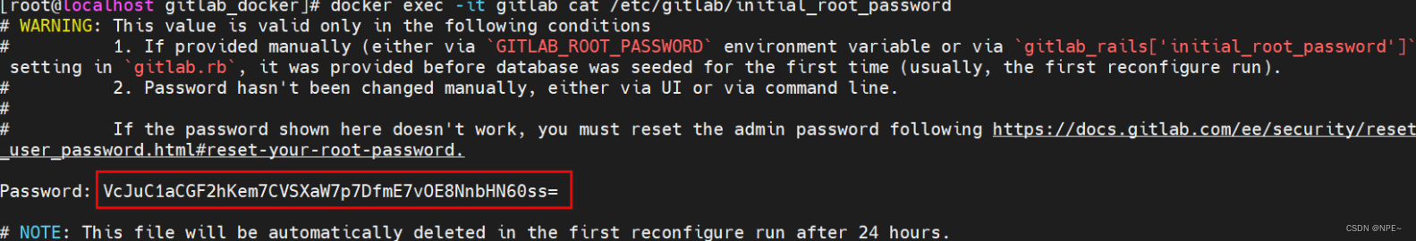 docker exec -it gitlab cat /etc/gitlab/initial_root_password