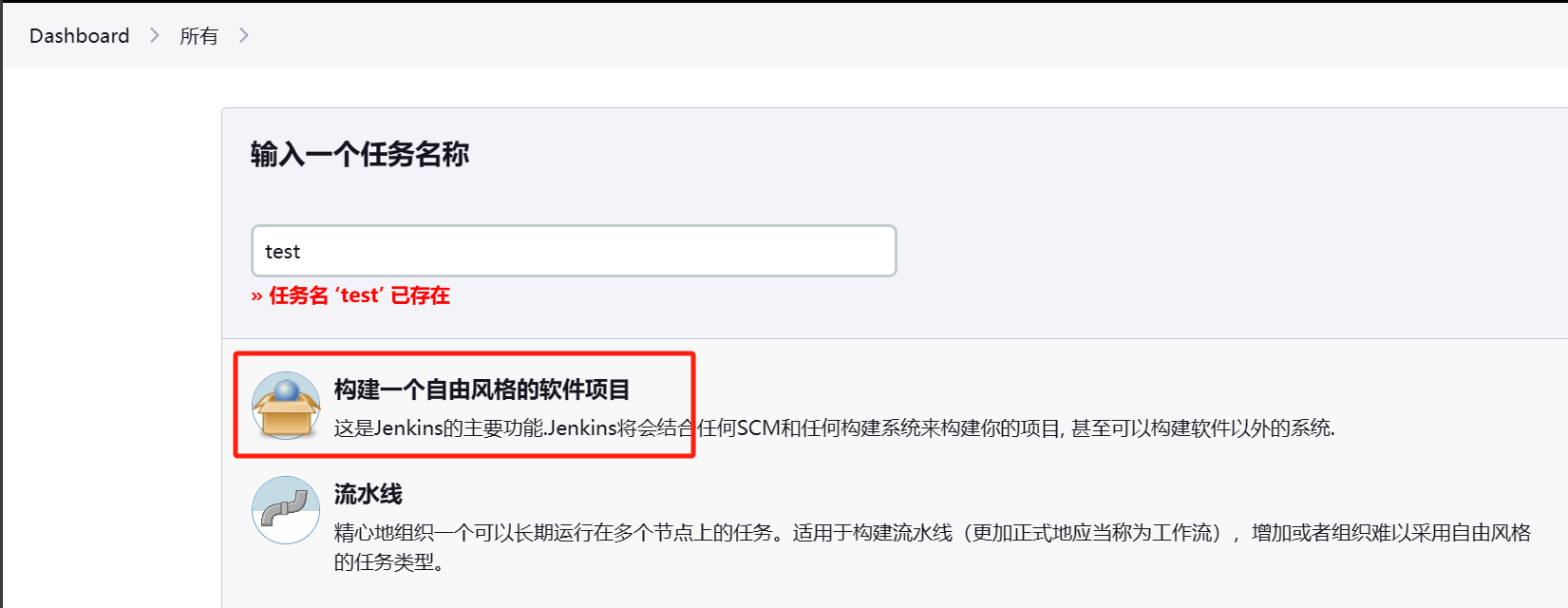点击Jenkins左侧新建任务(选择自由风格的项)