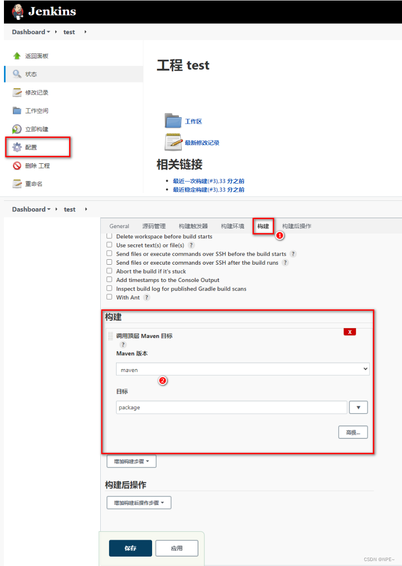 注意:Jenkins构建过程中,它以独立的进程运行,并且可能具有不同的环境配置。这意味着Jenkins可能无法直接访问系统环境变量中的Java路径,所以要写绝对路径。若指令执行失败,可以从绝对路径方向排查。