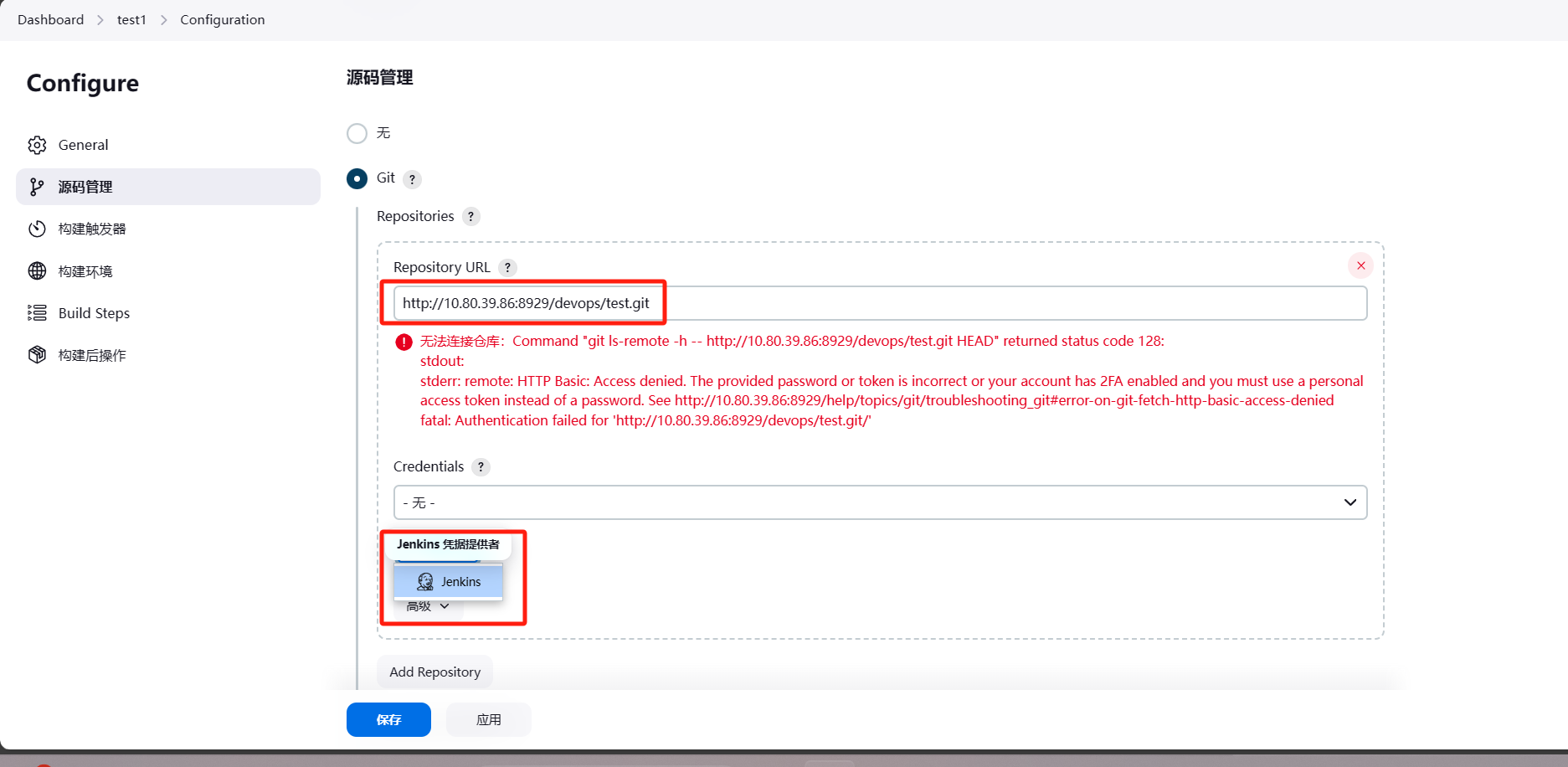 私有云需要账户认证(gitlab登录账户密码),配置后点击Credentials选择使用