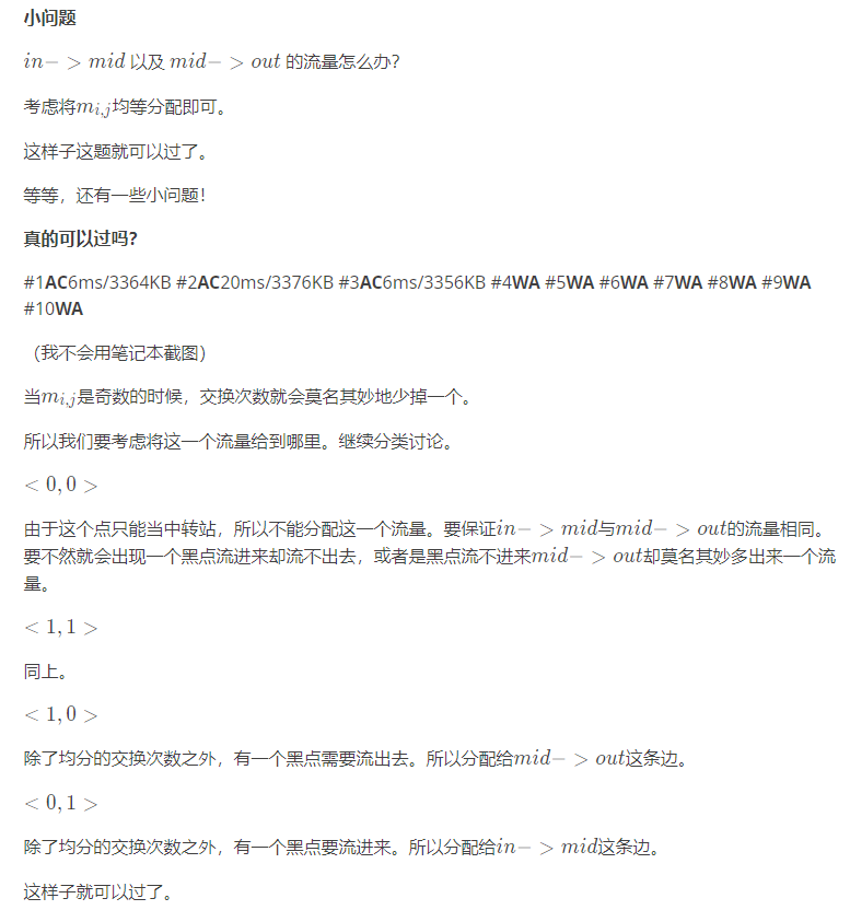 有一个n行m列的黑白棋盘,你每次可以交换两个相邻格子(相邻是指有公共边或公共顶点)中的棋子,最终达到目标状态。要求第i行第j列的格子只能参与mi,j次交换。