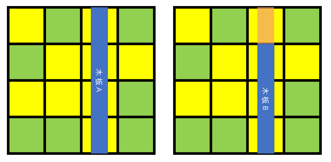 显然,木板 AA 一定比木板 BB 更优,因为橙色部分可以重复覆盖。