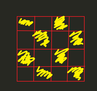 给定一个01矩阵,其中你可以在0的位置放置攻击装置。每一个攻击装置(x,y)都可以按照“日”字攻击其周围的 8个位置(x-1,y-2),(x-2,y-1),(x+1,y-2),(x+2,y-1),(x-1,y+2),(x-2,y+1), (x+1,y+2),(x+2,y+1)