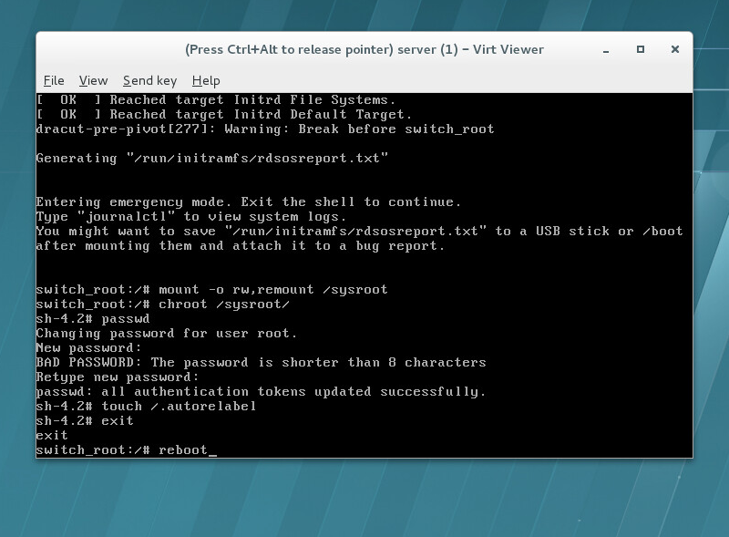 8、重新挂载sysroot文件系统:mount -o rw,remount /sysroot