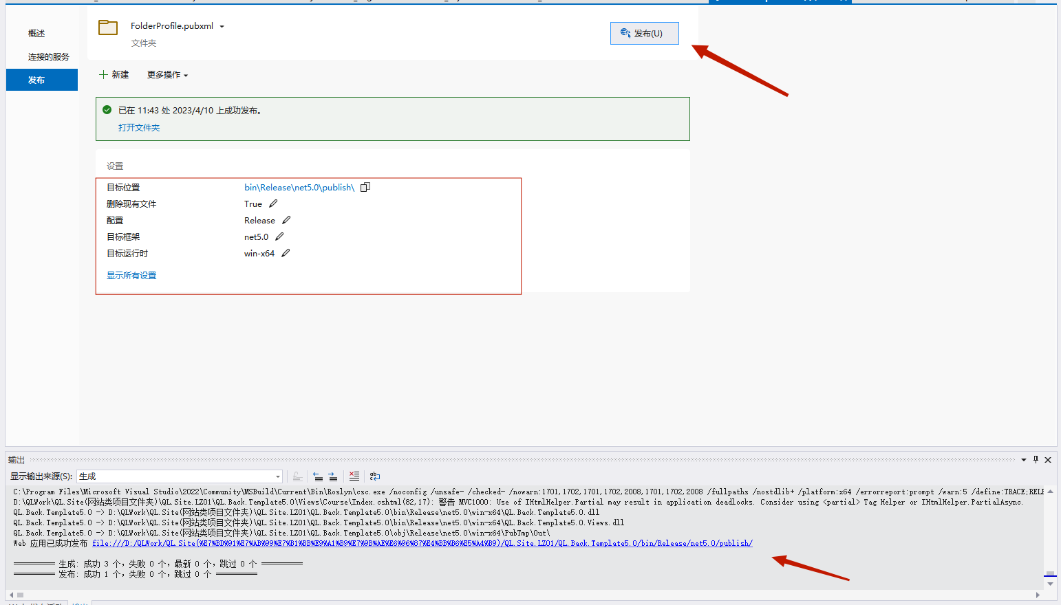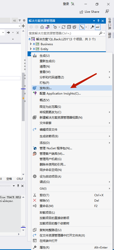 在Ql.Back.Templat5.0文件夹上鼠标右键点击发布
