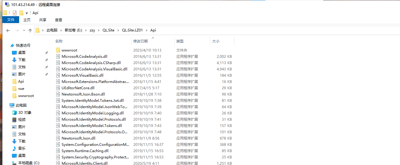 通过远程练连接登陆到服务器上面,并将发布过的内容(1)放到Api下面