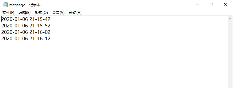 可以看到程序每隔10秒就会向message文件写入一行当前时间。