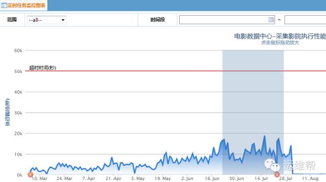 按定时任务查看它的执行趋势图,能直观地反映每一次执行是否成功、耗时、是否超时,如下图所示: