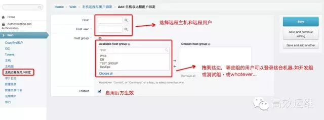 创建主机与远程用户绑定关系