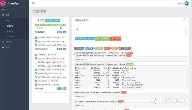 CrazyEye 和其他开源产品的区别在于,是一款堡垒机+主机管理的软件。支持Linux主机操作审计,目前不支持Windows(已列入支持计划),并支持对主机进行批量命令、文件分发操作,后期还会加入计划任务管理,敬请期待。