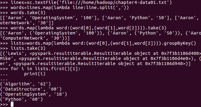 二、学生课程分数 groupByKey() -- 按课程汇总全总学生和分数