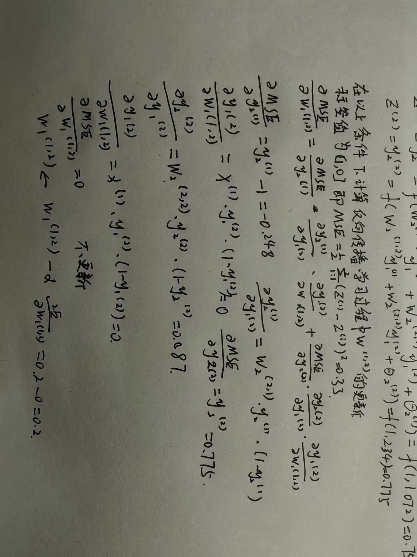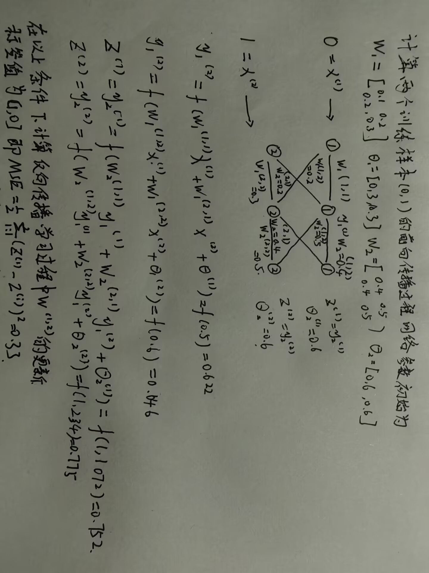 1. 根据上题中的神经网络结构和参数、数据,请计算反向传播过程中W(1,2)1W1(1,2)的更新过程。
