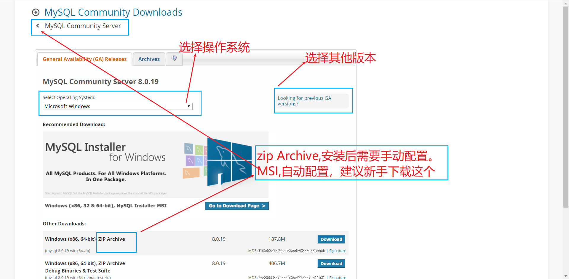 - 我下载的是MSI,所以我点击“< MySQL Community Server”