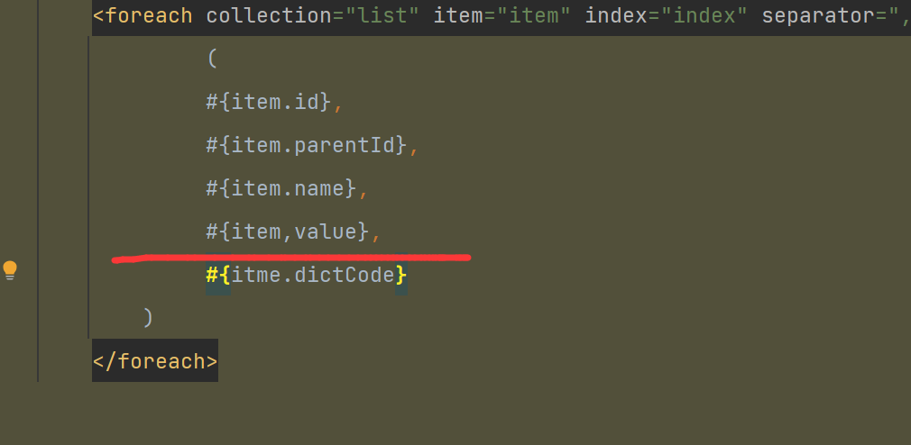 Parsing error was found in mapping #{__frch_item_0,value}. Check syntax #{property|(expression), var1=value1, var2=value2, ...}