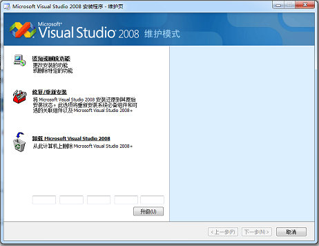 打补丁前VS2008维护界面: