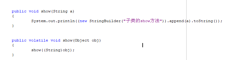 public void show (String a){...} //子类继承的父类的show方法 public void show(Object a){...} //子类自己定义的show方法