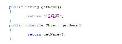 public String getName(){...} public volatile Object getName(){...}