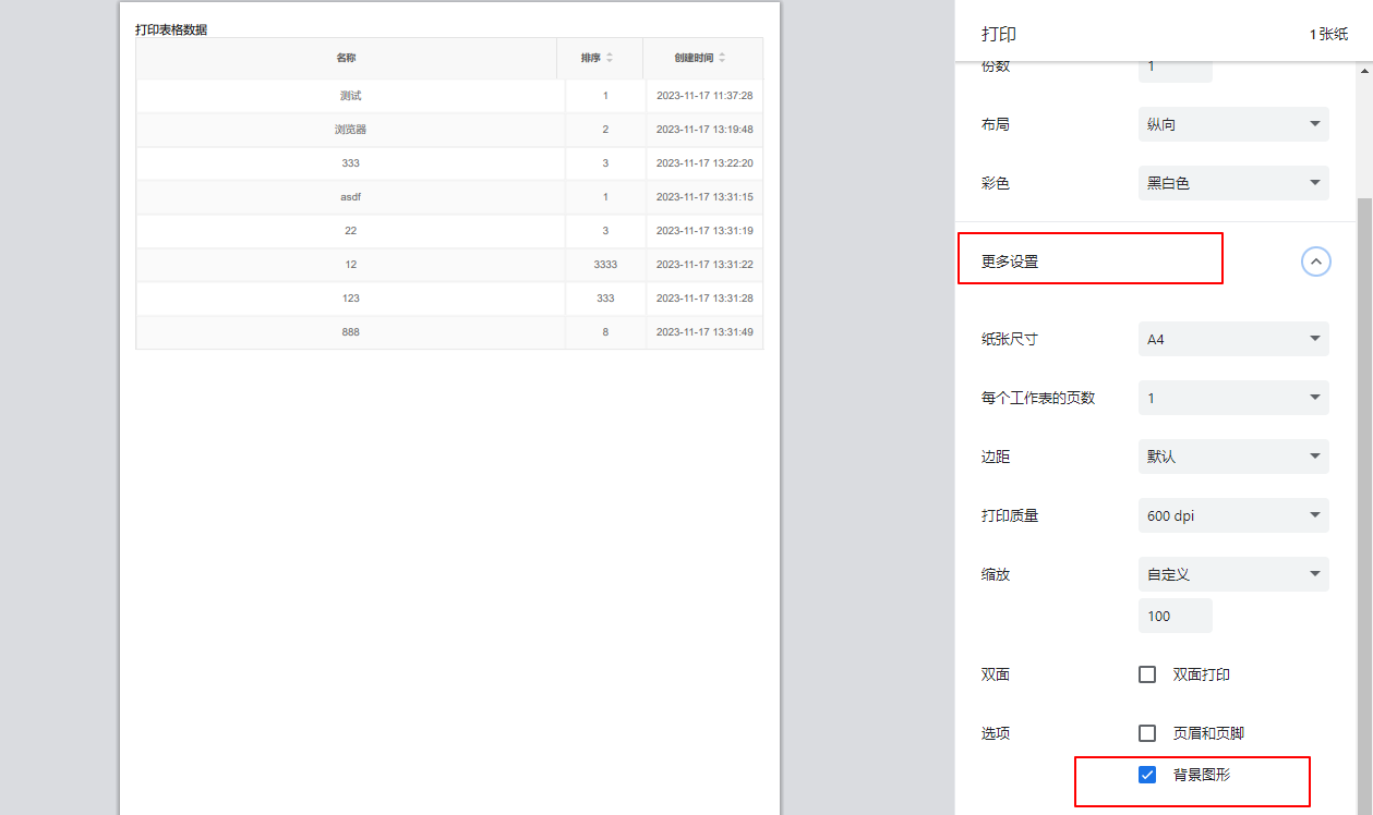 1.7 打印效果展示(选择背影图形表格就会显示背影)