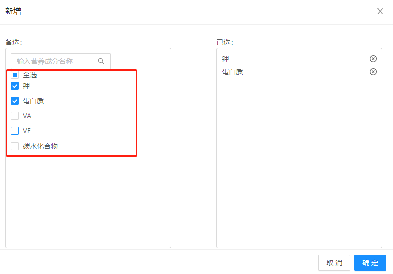 3、已选项侧边显示,可删除,并关联“备选”的选择状态