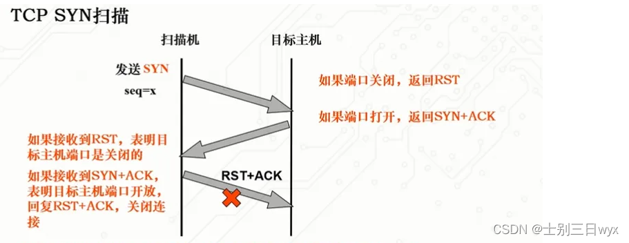 如果返回一个ACK,就说明端口开放;如果返回一个RESET,就说明端口没开放。