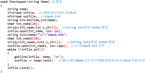 3、Checkpaper()查重函数只能把对应账号下生成的题目都存放在一个文件夹下面,但是没有实现程序真正意义上的查重,只能通过后台查看是否有重复的卷子,查重功能实现起来较繁琐。以下为Checkpaper()函数代码: