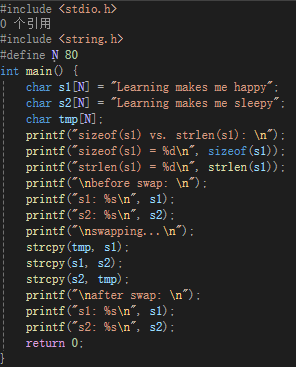 1.数组 s1 的大小:定义为 char s1[N],其中 N = 80,所以 s1 的大小是 80 字节(可存储最多 79 个字符 + 1 个 \0 终止符);sizeof(s1) 计算的是数组 s1 占用的总内存大小,即 80(N 的定义值);strlen(s1) 统计的是字符串 s1 的实际长度(不包含 \0)。