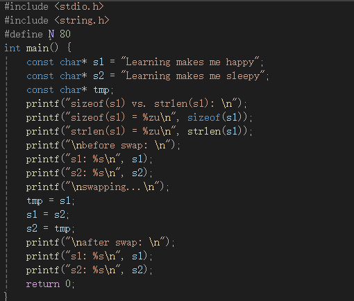 1.s1 存放的是字符串常量 "Learning_makes_me_happy" 的首地址;sizeof(s1)计算的是指针变量 s1 本身占用的内存大小;strlen(s1)统计的是字符串 s1 的长度(不包含 \0)。