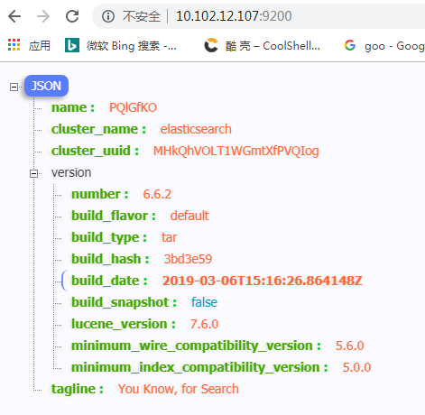 启动elasticsearch之后,会开放两个端口,9200和9300 我们skywalking连接使用的9200端口。在浏览器输入localhost:9200可以查看服务信息