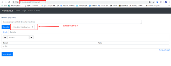 浏览器登录localhost:9090查看prometheus界面,在选项里选择查看的监控指标