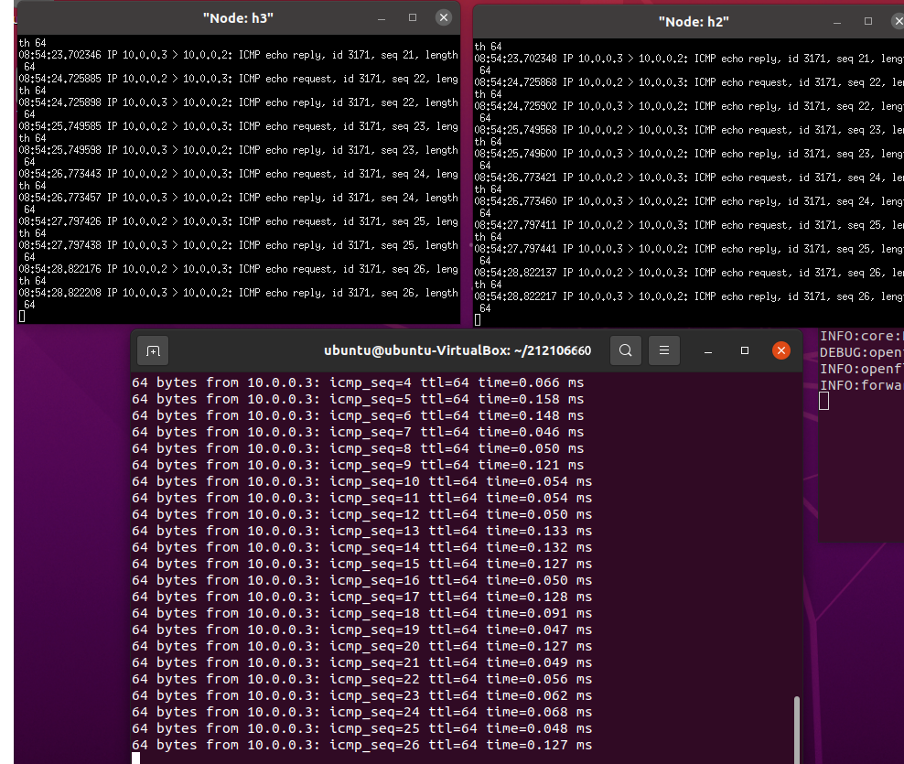 基础要求只需要提交h1 ping h2、h2和h3的tcpdump抓包结果截图,外加L2_learning模块代码流程图,其余文字请勿赘述;