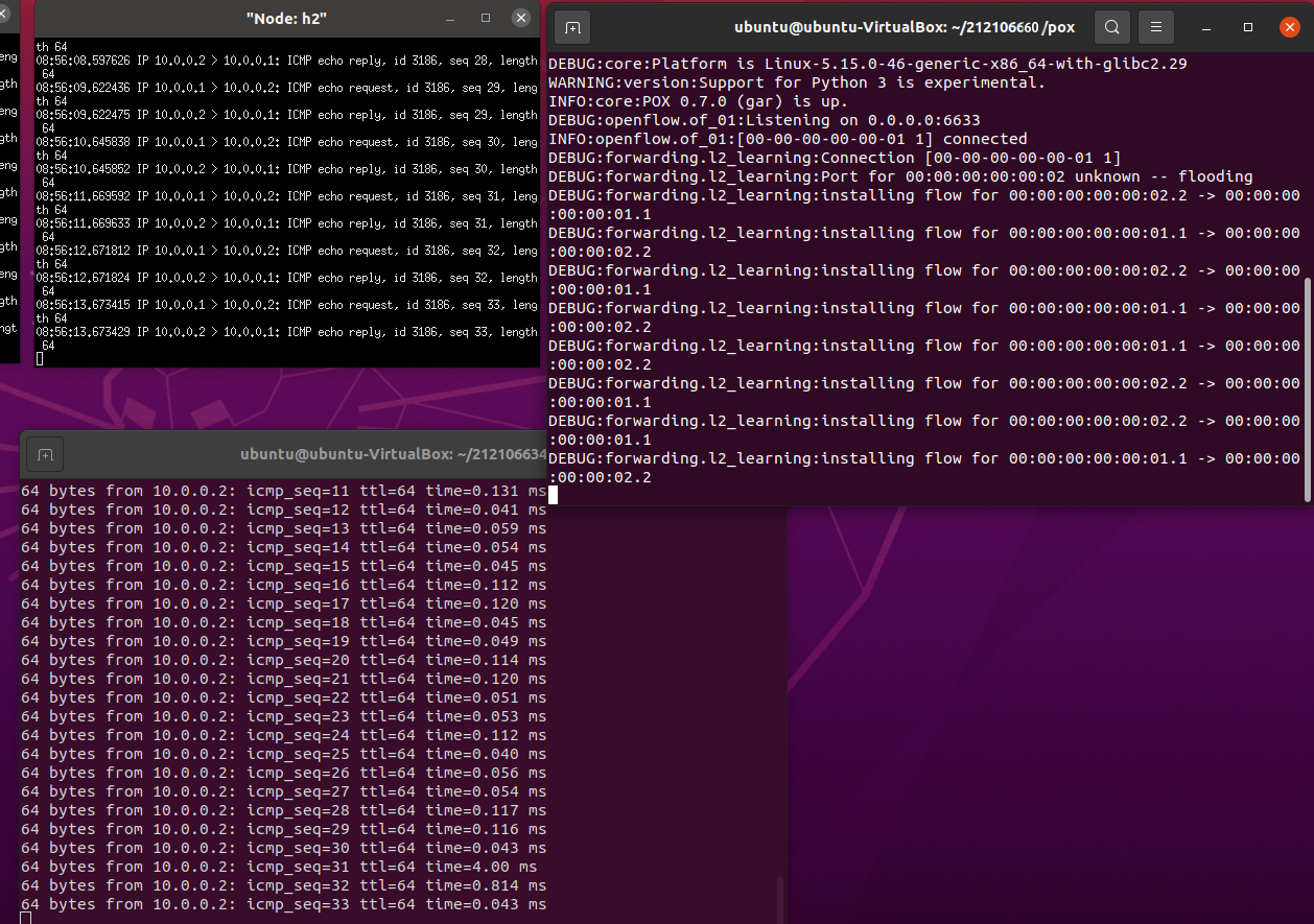 通过验证POX的forwarding.hub和forwarding.l2_learning模块,初步掌握POX控制器的使用方法;