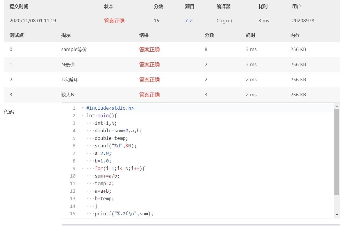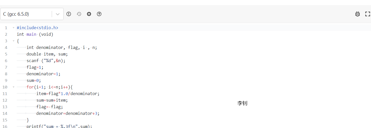 数据表达: 定义变量用了denominator,flag,i,n.用int定义。数据类型是基本类型中的双精度浮点型double