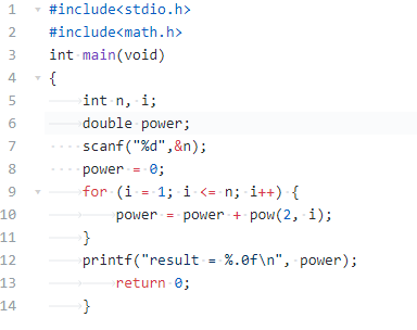 power = power + pow(2, i);将调用函数中求得结果代人上式求最终结果