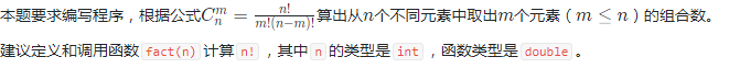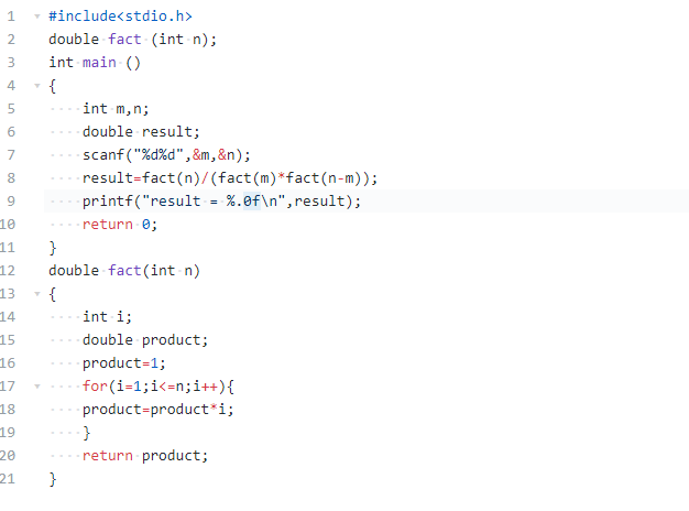 使用了result = fact(n) / (fact(m) * fact(n - m));使用for循环语句,调用了fact函数