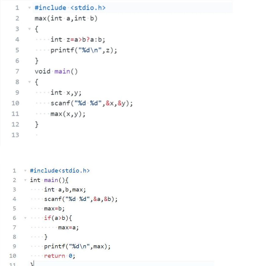 1.第一位同学定义的是max(int a,int b)函数,而我用的if -else语句