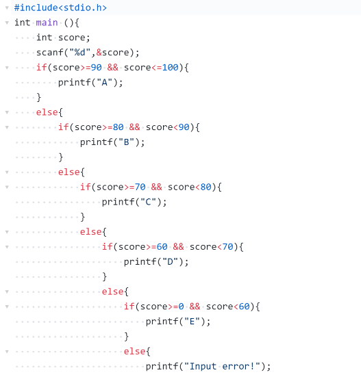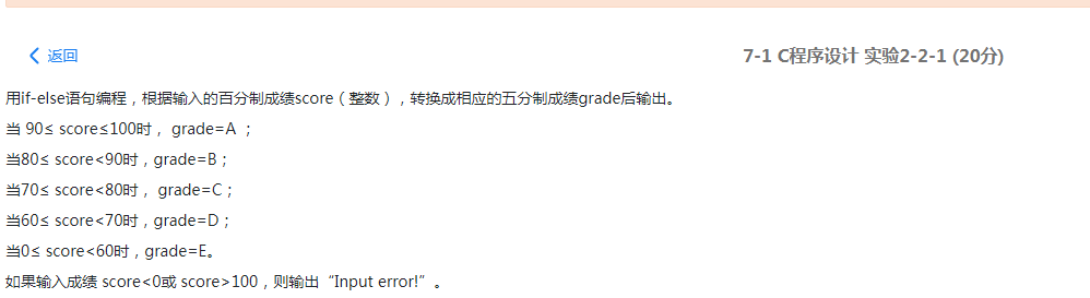 | 200 | Input error! | 200不在 0≤ score ≤100内所以输出Input error! |