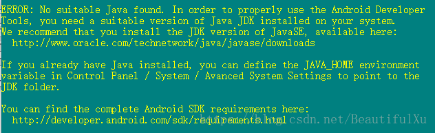 搭建Android开发环境,运行SDK Manager.exe,屏幕出现黑框一闪而过,然后就没然后找到find_java.bat,在cmd 中cd到目录并运行它,结果出错