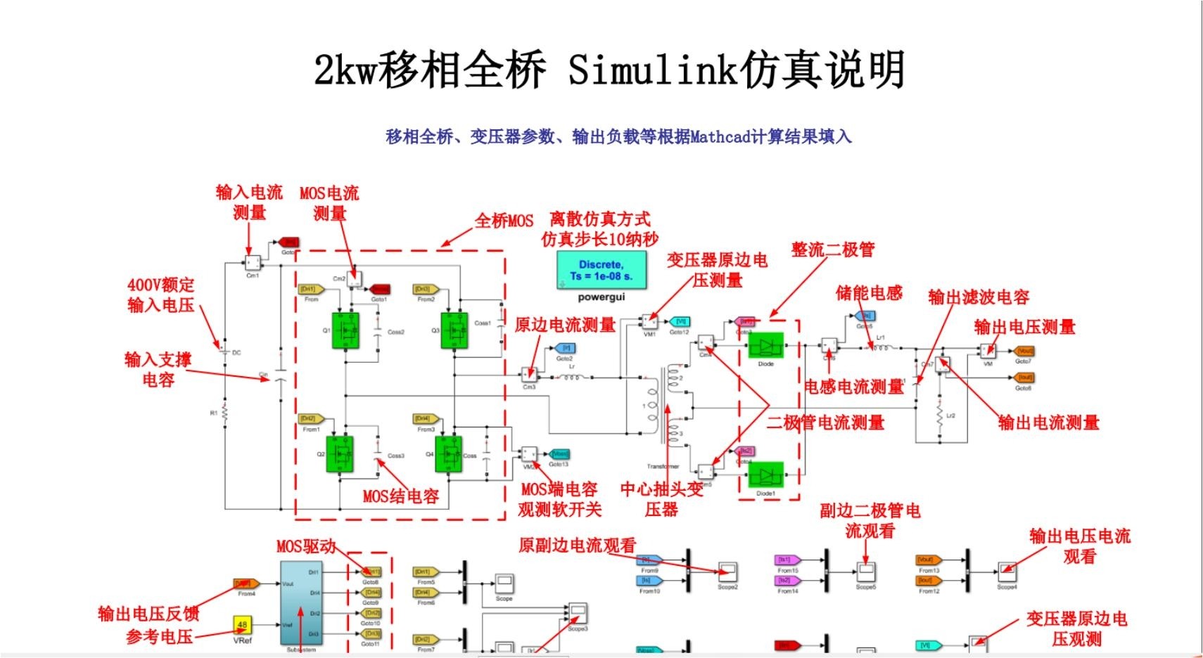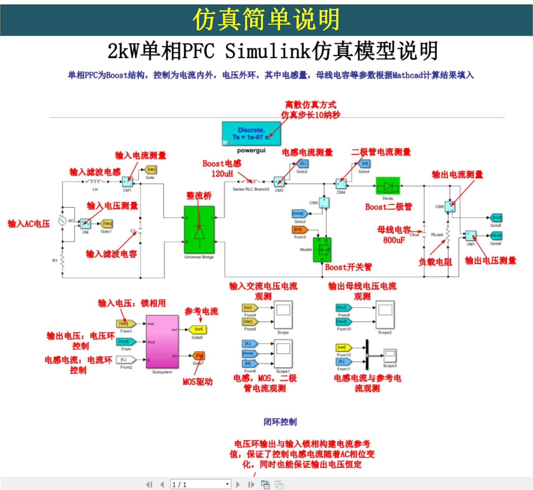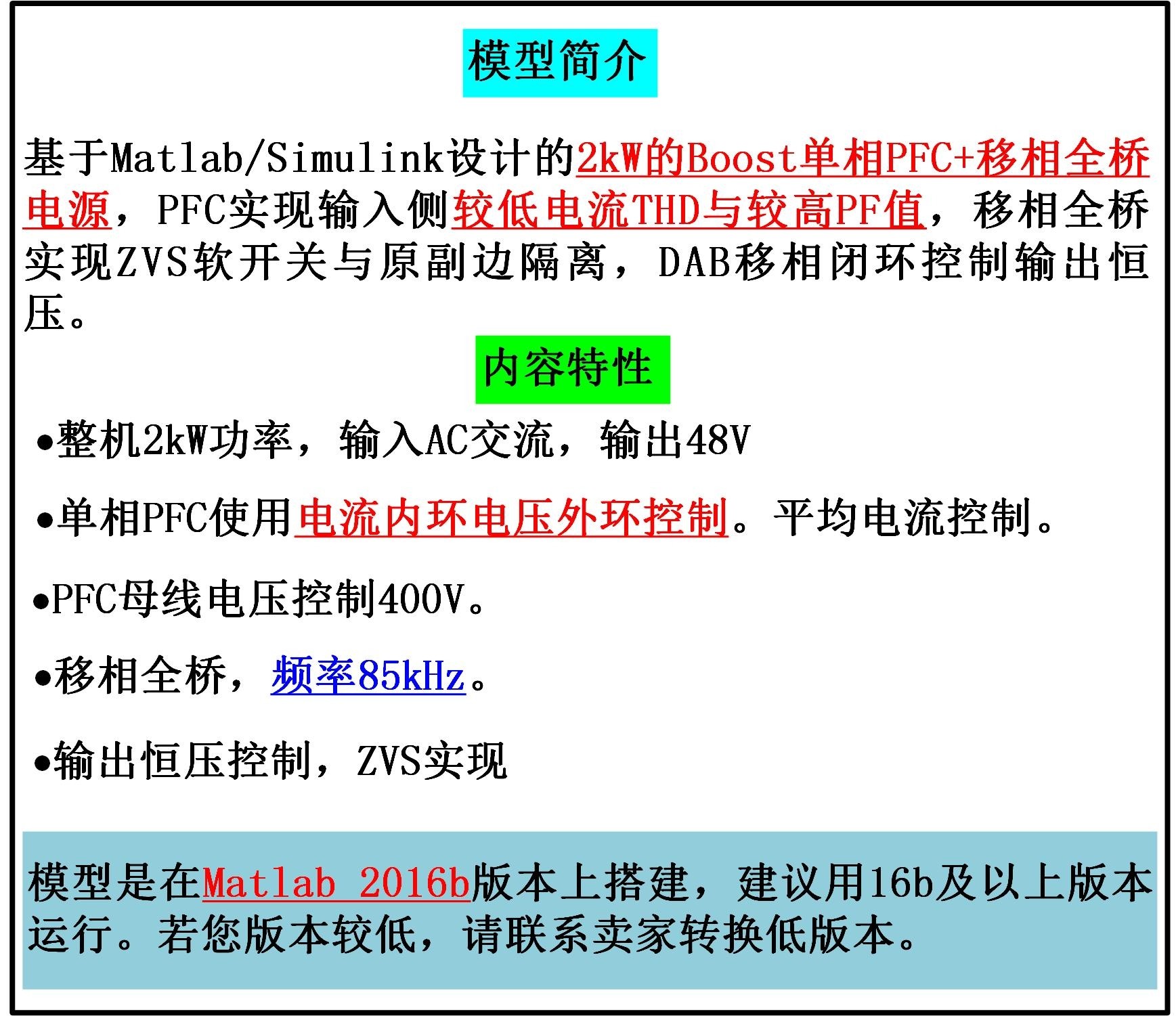 2kwboost单相PFC,移向全桥matlab仿真模型,模型说明,详细的计算过程,如变压器电感计算,x电容计算等,pfc设计参考资料,移向全桥参考资料等。