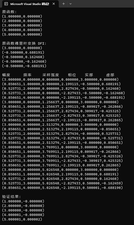 verify[j].re += Re;//把每个三角函数对应特定采样弧度的实部累加起来