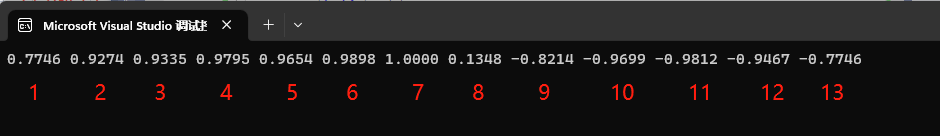 #include <iostream> #include <iomanip> #include <vector> #include <cmath> using namespace std; // 计算平均值 double mean(vector<double> v) { double sum = 0; for (int i = 0; i < v.size(); i++) { sum += v[i]; } return sum / v.size(); } // 计算协方差 double covariance(vector<double> x, vector<double> y) { double x_mean = mean(x); double y_mean = mean(y); double sum = 0; for (int i = 0; i < x.size(); i++) { sum += (x[i] - x_mean) * (y[i] - y_mean); } return sum / x.size(); } // 计算相关系数 double correlation(vector<double> x, vector<double> y) { double cov = covariance(x, y); double x_std = sqrt(covariance(x, x)); double y_std = sqrt(covariance(y, y)); return cov / (x_std * y_std); } vector<double> correlation1(vector<double> x, vector<double> y) { int N1 = x.size(); int N2 = y.size(); int N = N1 + N2 - 1; vector<double> z(N); for (int i = 0; i < N1 - 1; i++) { y.insert(y.begin(), 0);//在头部补0 y.push_back(0);//在尾部补0 } for (int i = 0; i < N; i++) { vector<double> cut(y.begin() + i, y.begin() + i + N1);//在y向量上从左到右依次截取N1个长度的元素放到cut中 z[i] = correlation(x,cut);//计算相关系数并存入z向量中 } return z; } int main() { vector<double> x = { 20, 30, 40, 50}; vector<double> y = { 10,12,15,20,30,40,50,30,15,10}; vector<double> z = correlation1(x, y); for (int i = 0; i < z.size(); i++) { cout << fixed << setprecision(4) << z[i] << " ";//四舍五入保留4位小数点 } cout << endl; return 0; }