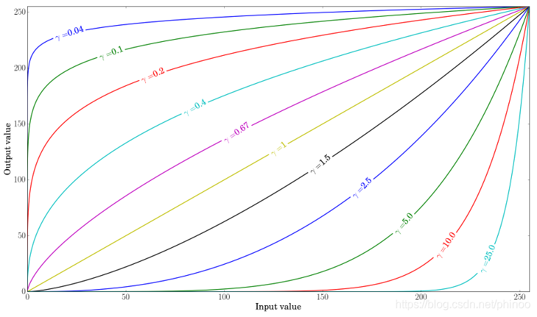 Gamma校正可以使用输入值和映射输出值之间的非线性转换来校正图像的亮度: