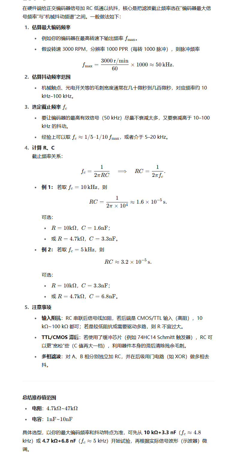正交编码器RC低通抗抖滤波容值和阻值计算