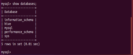 - 在mysql新建hive数据库 show databases;