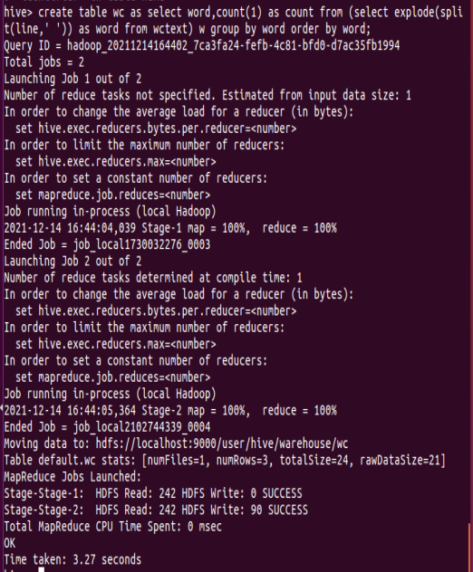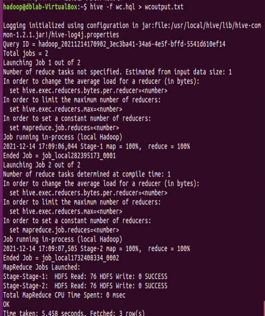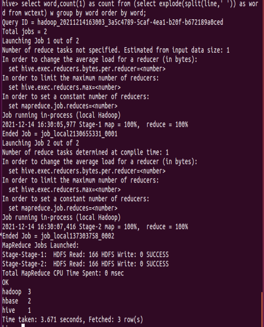 13.本地调用本地hql文件进行词频统计,将结果保存为本地文件