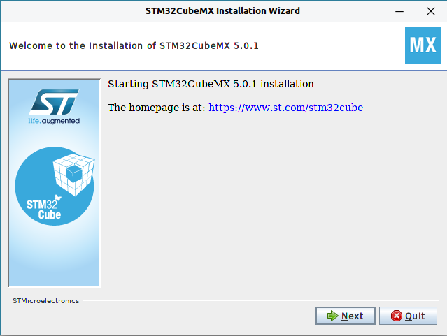 After installed, use command "./STM32CubeMX " to execute, as below: