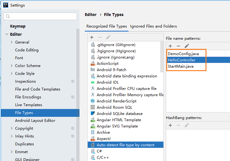 解决方法:办法就是,打开设置,找到File Types(可以通过左上边的搜索快速找打,然后,找到签名添加的auto-detect file type by content类型,你会发下在右下边有你添加的文件安静的躺在那,快快把他删除了。